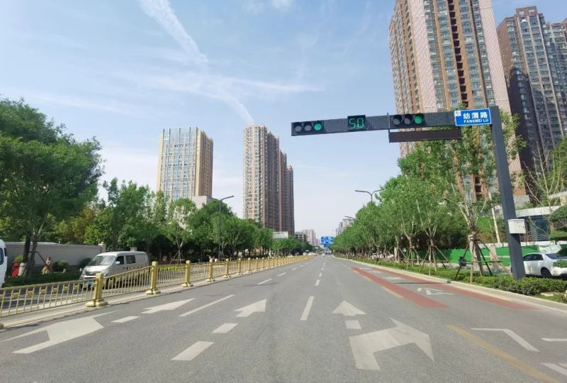 8月被评为最佳路段的纺渭路,是灞桥区南北向主要交通干道,也是我市为迎十四运环境整治提升的一条重点道路。经绿化改造提升,道路路幅宽度与乔木高度相协调一致,下层灌木种植红叶石楠和金森女贞,品种丰富,并种植冠型饱满、树干通直的秋色叶树种白蜡,靠近机动车道种植豆瓣黄杨,形成高低错落的道路景观。