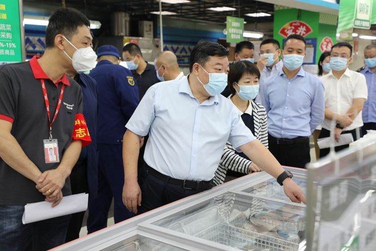 在华润万家(文艺路店),刘其智听取了负责人对相关情况的介绍,深入了解稳价保供、食品安全、消防安全及疫情防控措施落实等情况。刘其智强调,要全力做好节日期间市场保供稳价工作,把好供应关、销售关、安全关,切实维护好市场秩序和广大消费者合法权益,确保节日期间市场货物供应充足、价格平稳、质量安全,让群众买得放心、吃得安心。要严格落实“四方”责任,强化进出口通道管控,严格落实扫码、测温、戴口罩、一米线、消杀、员工健康监测等防控措施,定期开展核酸检测,筑牢疫情防控安全防线,着力营造良好的购物环境。