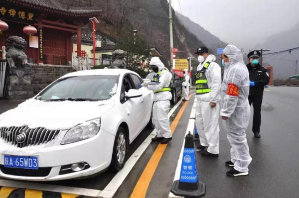 在秦岭脚下沣峪口检查站,公安干警24小时坚守岗位,尽职履责,联合卫生部门对过往出入境车辆逐一进行检查,重点对从武汉方向进入辖区的车辆人员认真登记。