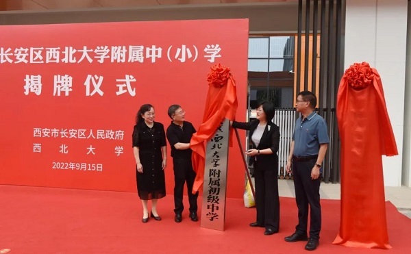 9月15日,西安市长安区西北大学附属中(小)学揭牌仪式在西北大学附属小学(原长安十小)举行,西北大学校长郭立宏,长安区委副书记、区长李娴,副区长梁文辉出席。西北大学副校长吴振磊主持仪式。