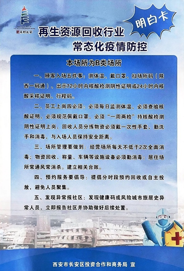 为进一步做好2022年国庆节期间保供应稳价格、安全生产及疫情常态化防控,长安区压实全区商贸流通行业安全责任意识,组织辖区62家大型商场、超市、加油站、物流企业、再生资源行业、农贸市场等商贸企业负责人,开展节前安全生产、疫情防控工作专题培训,进一步落实企业主体责任,统筹将安全生产、疫情防控、保供应保稳定等纳入企业日常管理工作,同研究、同部署、同落实,确保有专门责任人和专项工作机制。