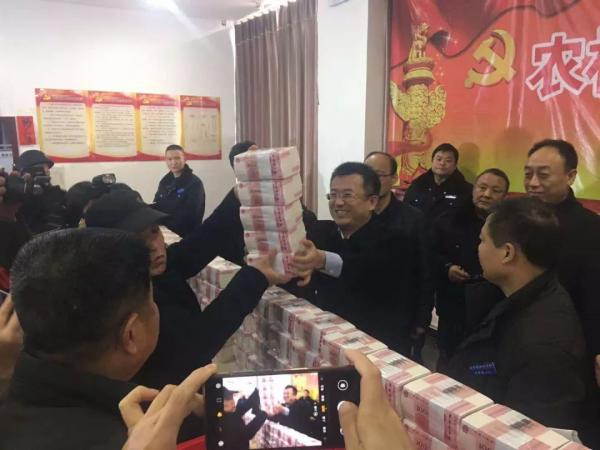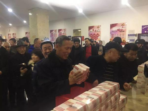 1月13日上午,高陵区姬家街道杨官寨村村委会大厅里人头攒动、热闹非凡,该村2019年集体收益分红大会正在热烈而有序的进行,在场的村民们紧握被珍视为"活资产"的股权证书,激动而焦急地等待着被点名叫号,幸福与喜悦洋溢在每个人的脸上……当天活动现场共分红2043.8万元,其中,3984名正式社员股东分红1992万元,每人分红5000元,新增的518名未转正社员股东分红51.8万元,每人分得1000元,看着手里的"真金白银",大家已经笑得合不拢嘴。"这已经是村上连续第10年分红了,我家总共5口人,这次分了25000块钱,比去年多了足足10000块哩,够咱过个洋火年咧!"杨官寨村村民陈社平激动的告诉记者。