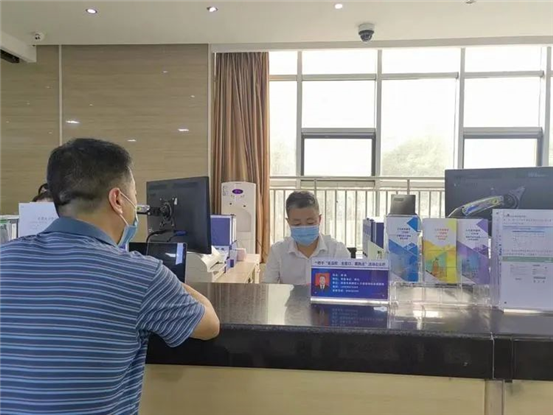 区医疗保障局局长刘民安到区政务服务中心参与“一把手走流程、坐窗口”活动,现场为群众解答居民参保及待遇报销等问题。