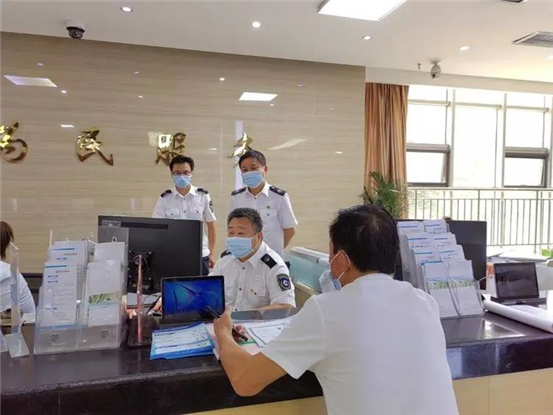 区烟草局局长谭峰、副局长贺涛到区政务服务中心参与“一把手走流程、坐窗口”活动,现场为群众办理烟草证业务。