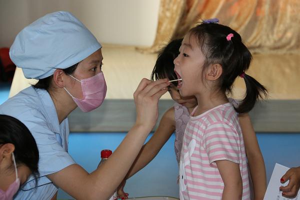 本网讯(特约记者 侯欢)为更好地了解幼儿生长发育状况,有效预防口腔龋齿及甲状腺肥大,6月20日,陆港一幼邀请西航社区卫生服务中心、西航口腔门诊部为幼儿进行口腔龋齿检查及甲状腺摸查。