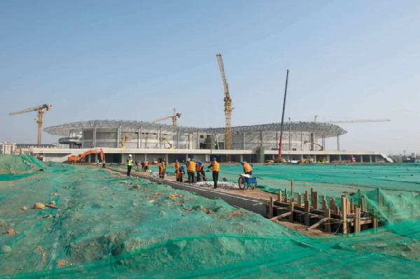 西安体育学院鄠邑校区作为“十四运”副赛区,手球馆和曲棍球场、棒球场、垒球场、橄榄球场“一馆四场”项目已全面复工,现场400多名工人和大型机械正紧张有序施工。王浩与项目负责人深入交流,当了解到受疫情影响材料运输和工人到岗还存在一定困难,他现场要求相关部门积极协调解决,保障项目加快建设,确保6月底全部竣工。