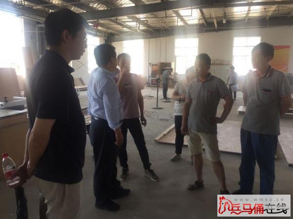 在博强家具制造公司、福泰展柜,听取企业负责人安全生产日常管理情况,对作业现场粉尘涉爆整改进度进行检查。
