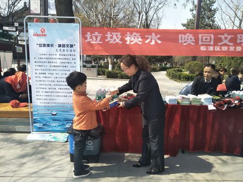 临潼区旅发委自2018年4月份以来,不定期在主要景区人流密集处组织开展“垃圾换水·唤回文明”主题活动,通过手持宣传牌,发放宣传资料、文明引导等方式,加大文明旅游宣传,呼吁倡导广大居民和游客自觉摒弃、抵制不文明陋习,爱护环境,从小事做起,做文明行为的践行者和守护文明的参与者。活动的开展受到了游客群众的一致好评,为提升公民素质,促进景区文明,以及“美丽临潼”建设做出了积极贡献。2019年,区旅发委将在持续开展好垃圾换水活动的同时,多形式多举措开展好垃圾分类主题教育活动,积极引导广大游客群众增强垃圾分类意识和行动,为建设干净整洁的美丽临潼再增光添彩。