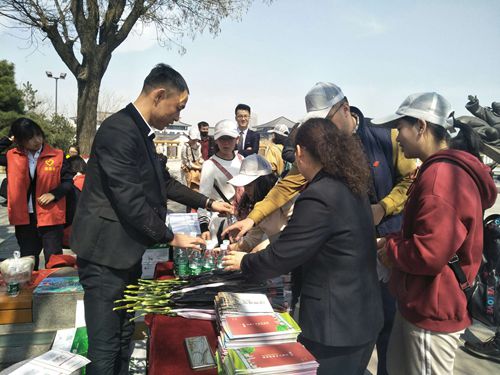 上午,志愿者们到华清宫景区西门处小广场,紧张有序地做着活动前的准备工作,宣传横幅、纯净水、《临潼旅游导览指南》等宣传资料、印有临潼文化的鼠标垫、玫瑰花等迅速到位。