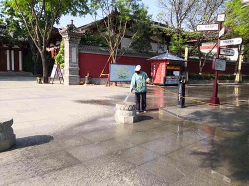 度假区积极开展“迎十四运”环境卫生整治行动,努力营造整洁、有序的人居环境,全面提升城市品质。组织保洁工作人员200余人从大处着眼、从细微着手,立即行动,开展“城市家具”大擦洗。擦洗市政道路垃圾收纳设施、公共座椅、道路护栏等1000余套,完成防疫消杀4轮次。擦洗护栏两处110余米、广告牌1处、车站牌1处。擦洗广场、景区垃圾收纳设施、公共座椅、导视牌等458套,完成防疫消杀4次,同时完成区域公共卫生间内外环境大擦洗。清理湖面漂浮物600平方米,冲洗景区石材路面800平方米。