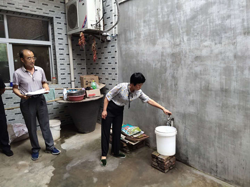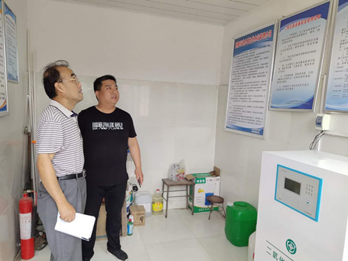 解决贫困地区农村饮水安全问题,是脱贫攻坚“两不愁三保障”的重要指标之一,也是筑牢“民生底线”至关重要的一环。6月28日,市水务局农水处副处长杨贵仓,区城乡供水管理站副站长唐少波对穆寨街道7个行政村的供水站环境卫生和消毒设备使用情况进行现场检查,并到每一个村随机抽取两户建档立卡户,查看是否正常供水,询问村民是否能够达到24小时供水以及每立方水供水价格。