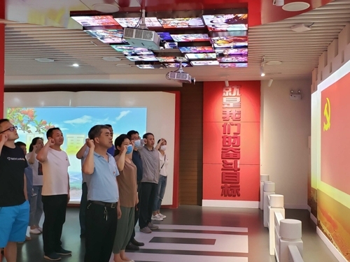 参观结束后,骊山街道华清社区党支部全体党员干部面向党旗庄严宣誓,重温入党誓词,并许下廉政承诺。
