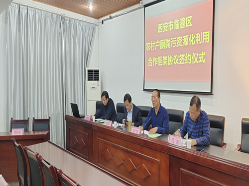 签约仪式上,首先就2020改厕工作进展情况及签约背景进行了介绍。区卫生健康局分管领导郭宏欣介绍了临潼区三年改厕情况。陕西欣捷特环保生物科技有限公司总经理介绍了公司相关情况。各街办与陕西欣捷特环保生物科技有限公司签订了《西安市临潼区农村户厕粪污资源化利用合作框架协议》。
