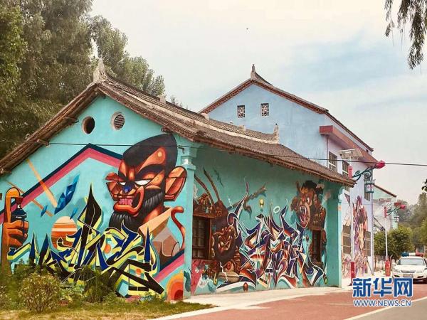 这是洛南县玫瑰小镇里独具特色的涂鸦墙。新华网发 李小明摄