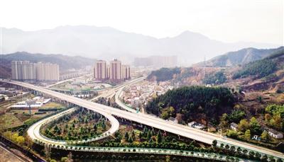 柞水至山阳高速公路开通后将实现包茂高速、福银高速在商洛地区的连接,开辟出秦岭南麓的一条横向高速大通道。图为11月20日拍摄的水阳高速与福银高速相接的枢纽立交。 新华社发