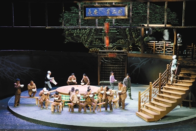 西安电报大楼的钟声,具有西安历史风味的大树,西安人爱用的老碗,还有每个场景切换之间秦腔表演和唱段,这些熟悉的西安元素,让话剧伊始就充满了老西安的味道。很多人以为这是编剧的设定,陈彦却直言,这是导演的设计。然而导演查明哲却不是西安人,一个非西安人却能直抵西安人的心灵,这不得不让人感慨导演的功力之深。查明哲告诉记者:“因为描写的是西安图景,而两位编剧对这座城市抱着深厚的情感。剧本写的是西安人的生活历程,从一个家庭写起,从家庭伦理道德推向社会的伦理道德,同频共振,观众也必然会产生情感的共鸣。我和团队就说,创作中要燃烧我们的心灵,共同谱写情感之歌,智慧之歌和守望之歌。”