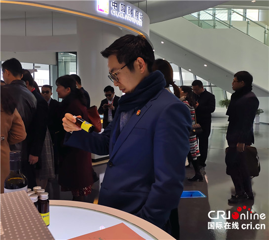 来自泰国驻华大使馆的外交官龙国伟仔细看展出的产品摄影 柳洪华