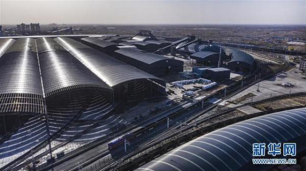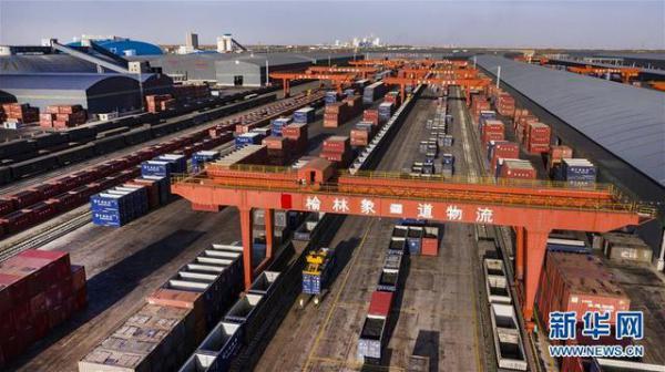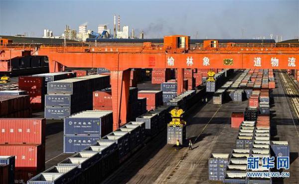 10月31日,在榆林象道国际物流园集装箱装卸区,员工在指挥装卸外运煤炭(无人机照片)。今年1至9月,该物流园铁路发运量达969万吨。 陕西省榆林象道国际物流园位于陕北能化基地核心区金鸡滩镇。自2019年6月运行以来,物流园累计发送量达1687万吨,其中煤炭发运占比96%,煤炭集装箱发运占38%,成为陕北煤炭向外运输的新业态新模式。物流园拓宽了陕北能源基地的货物运输渠道,有效破解煤炭外运瓶颈问题,打通了优质煤炭、高端能化、现代农业、先进制造等产业链条。 新华社记者 陶明 摄