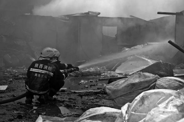 一商户说,中午12时许,他们发现天空突然变暗便出门查看,发现马路对面废品站内冒着浓烟,刺鼻的味道越来越浓,接着就看到消防车赶到现场。