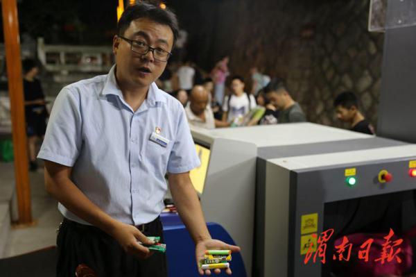 “你看,这把刀子和旁边箱子里的20多个打火机就是今晚安检出来的”。顺着洪均手指的方向,花花绿绿的打火机和许多管制刀具放置很多。