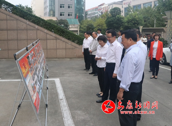 升旗仪式结束后,全体党员、干部职工参观了伟大历程、辉煌成就庆祝中华人民共和国成立70周年图片展,共同回顾党领导全国人民走过的光辉历程、取得的伟大成就。