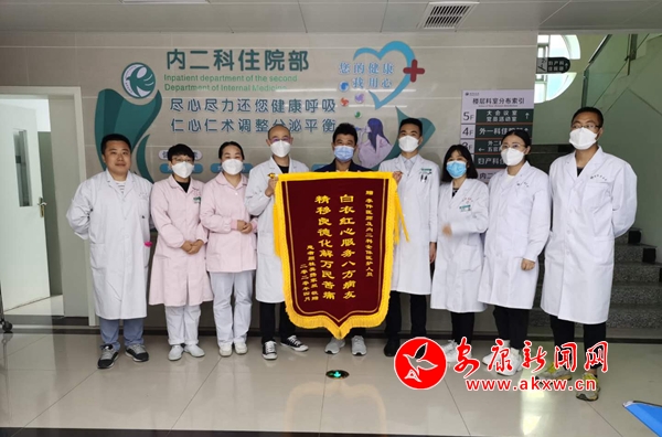 据悉,患者颜某因水肿在内二科住院治疗,入院时血压明显升高致结膜出血,科室团队秉承以患者为中心的宗旨,不断鼓励和安慰患者,详细了解患者病情,认真分析患者辅助检查结果,最终确诊为肾病综合征。经积极治疗后病情明显好转,为进一步明确病理分型,建议上级医院行肾穿刺活检,借助安康市中心医院对口帮扶之机,积极联系安康市中心医院相关科室进一步治疗。由于患者住院只有一人陪护,为减少患者家属因报销结算等事宜来回奔波,详细向其介绍医保相关政策规定,积极和医院医保科协调沟通,准确传达信息,使患者及时省心的进行了报销结算。近一个月以来,患者病情稳定,身体逐渐好转,让颜某及家属欣喜不已,特送锦旗以表感谢。