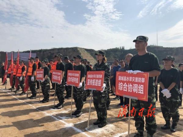 为了做好今年水务系统水旱灾害防御和应急抢险处置工作,保证水旱灾害工作高效有序进行,全面提高水务系统干部职工的防御意识,增强系统水旱灾害防御指挥机构防御、抗洪、抢险、自救的应急指挥能力,8月5日上午,蒲城县水务局水旱灾害防御队伍誓师大会暨2020年水灾害防御抢险演练在洛河右岸(袁家坡水源地)举行。