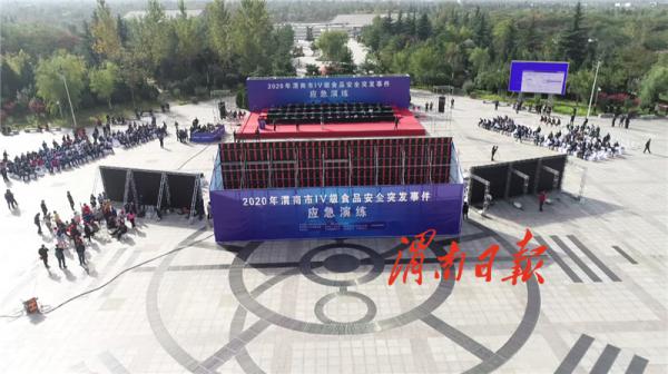 “同志你好,我是带队导游,我们这里有好多游客突然腹痛、呕吐,麻烦你能不能帮我联系一下医护人员?”“好的,我现在马上联系。值班室,值班室,我是西峰执勤人员杨琦,现在西峰巨灵足有22名游客突发身体不适,需要紧急救援。”10月21日,在华阴市华山生态广场,渭南市2020年Ⅳ级食品安全突发事件应急演练正在紧张进行中。