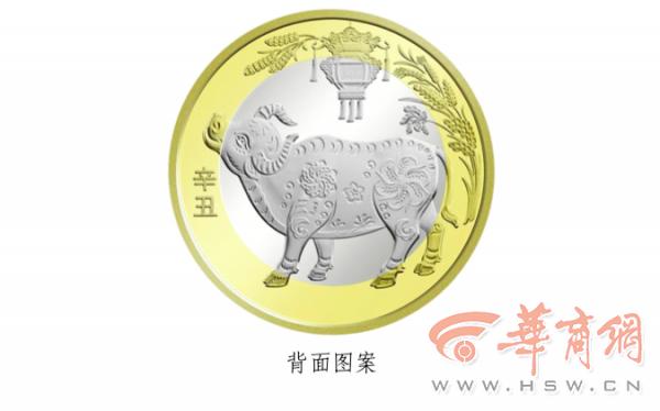 2021年贺岁普通纪念币图案方面,2021年贺岁普通纪念币正面图案为“中国人民银行”“10元”字样、汉语拼音字母“SHIYUAN”及年号“2021”,底纹衬以团花图案。背面主景图案为中国传统剪纸艺术与装饰年画元素相结合的一头抬头牛造型,衬景图案为花灯和五谷,币面左侧刊“辛丑”字样。