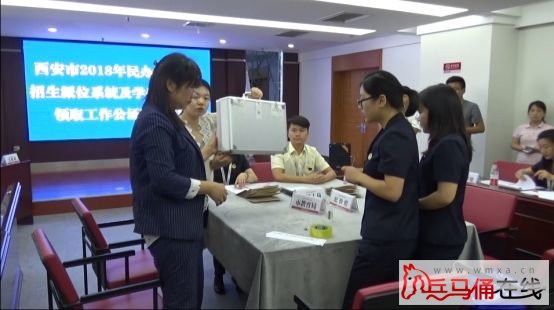 下午四点整,在教育纪检部门、人大代表、政协委员、家长代表以及社会新闻媒体代表全程监督下,西安市公证处工作人员前往市公证处保密室,确认保险柜封条完好后,取出装有电脑随机派位系统和报名数据的2个密码箱,返回领取现场。紧接着,西安市纪委驻市教育局纪检组干部检查密码箱封条完好情况,和市教育局工作人员共同向市公证处公证员报告密封情况,市公证处公证员现场宣布2个密码箱封条均完好。西安市公证处公证员撕掉封条,打开保险箱,分别取出装有派位系统和学生报名数据的密封信封,并按顺序放置在工作台上,紧接着核实身份依次向各区县发放。
