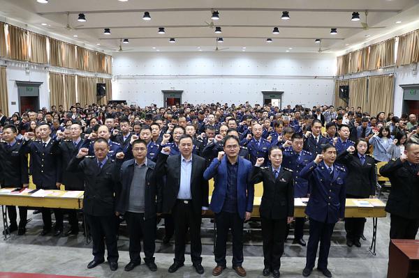 为认真落实全市、全区“追赶超越”攻坚年、“营商环境”提升年、“作风建设”强化年系列部署,打造新时期未央市场监管铁军,3月12日下午,未央区市场监管局在全市率先召开打造“六个一流”市场监管铁军誓师大会。未央区副区长陈军,区市场监管局党委书记叶小玲、公安未央分局副局长王鹏月,区政法委副书记、区扫黑除恶专项斗争办公室主任王建安同志,区纪委第五派驻纪检组组长韩红博、区市场监管局全体干部及辖区市场开办方及企业代表、协管员共计500余人参加会议。