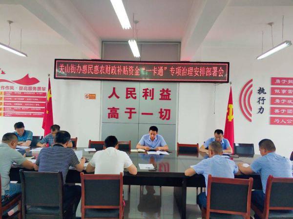 为认真落实省市区惠民惠农财政补贴资金“一卡通”专项治理精神,坚决整治群众身边腐败问题,27日下午,关山街办召开惠民惠农财政补贴资金“一卡通”专项治理安排部署会。街办领导班子、各中层及各村主任参加会议。