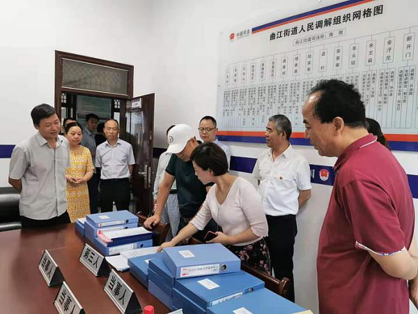 8月15日下午,陕西省委政法委、省司法厅等六部门深入曲江街道办事处走访调研曲江街道司法所人民调解队伍建设及具体工作开展情况。