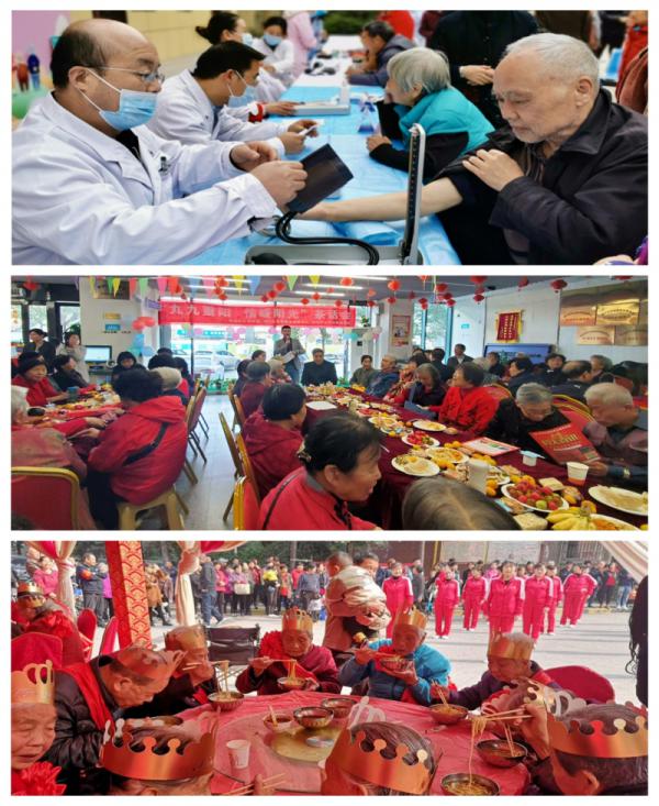 等驾坡街道党工委、办事处在千户社区举办了“弘扬养老孝老敬老传统 共建共享老年友好社会”主题文艺演出活动;在康宁社区开展“爱在重阳·孝老爱亲”主题文体比赛活动;在阳光社区联合区域化党委成员单位开展“九九重阳,情暖阳光”重阳节慰问座谈活动;在鑫龙天然居社区召开“医养结合、情暖重阳”中医养生座谈会;在田家湾社区举办了科普大学课堂,为辖区老人带来“国学经典之《大学》篇”,倡导大家要持续学习,提高自身修养与学识,为下一代树家风、正家规,弘扬正气正能量。小区还组织开展 “走走更健康,重阳节健步走”户外健身活动。