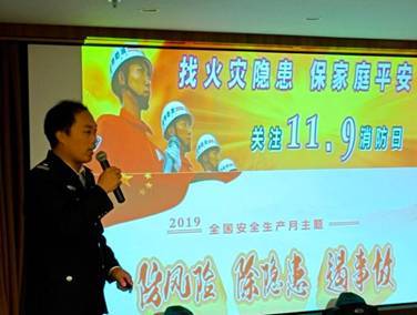 培训会邀请省安居消防站姜教官主讲。重点从居民用电、用气、用火常识、消防灭火器材和救生工具使用、法律法规规定、日常检查自查、火场逃生自救、隐患消除以及如何防范火灾发生进行讲解,同时全程运用多媒体对各类典型火灾事故案例从起因和危害程度及人员伤亡情况进行了深入剖析,并深刻吸取事故惨痛教训,警钟长鸣。
