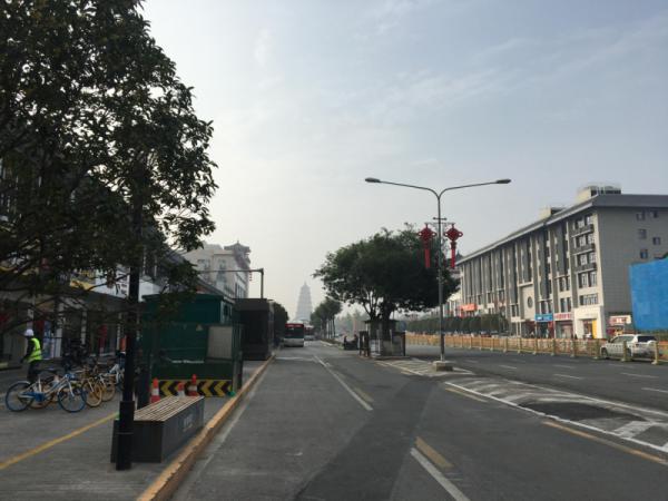 如今,从雁塔北路向大雁塔望去,高低错落的绿植、井然有序的街景设施,天空、建筑、路面无一不显示出清透明朗。